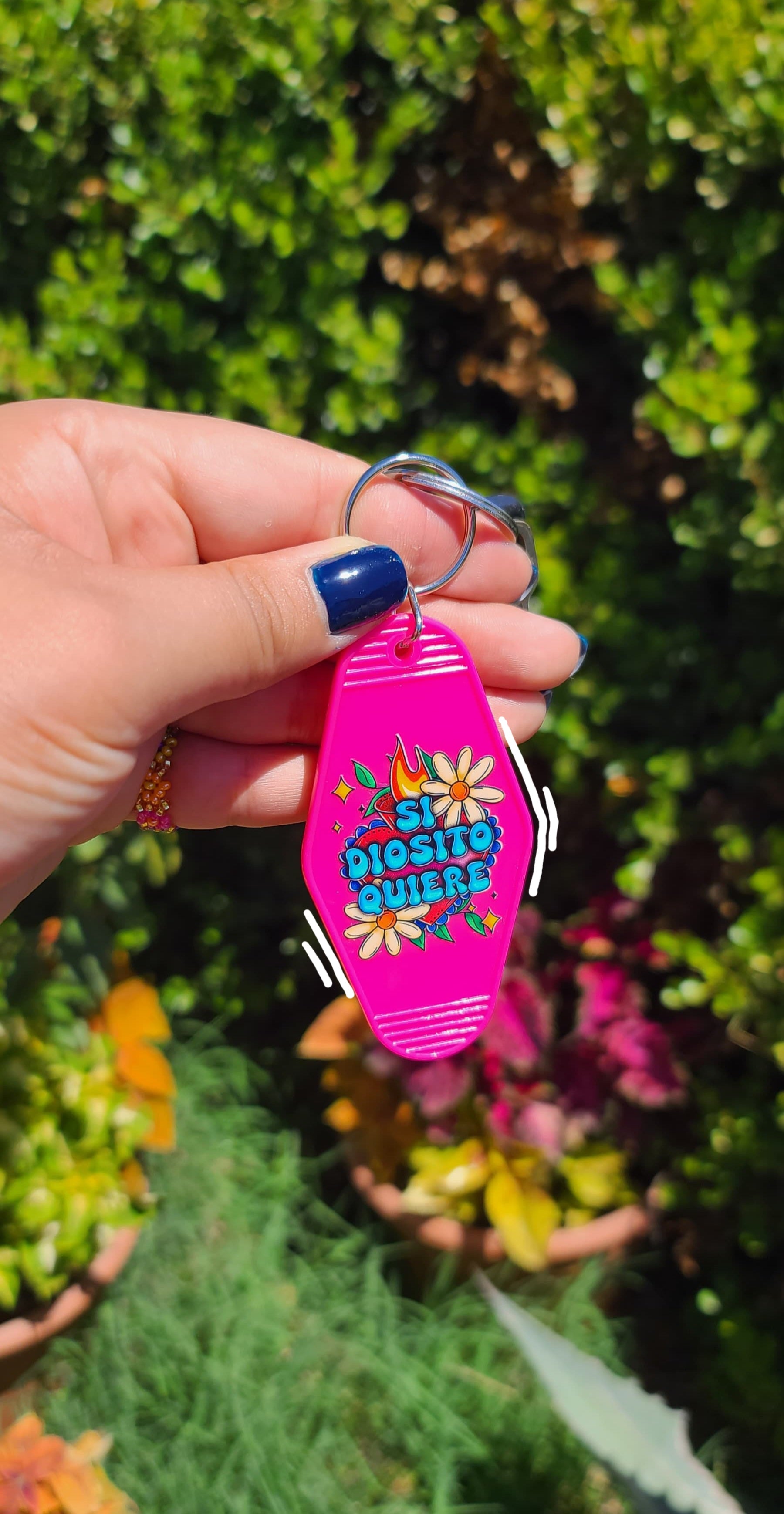 Introducing the Si Diosito Quiere Keychain - the perfect accessory to add some flair to your keys!